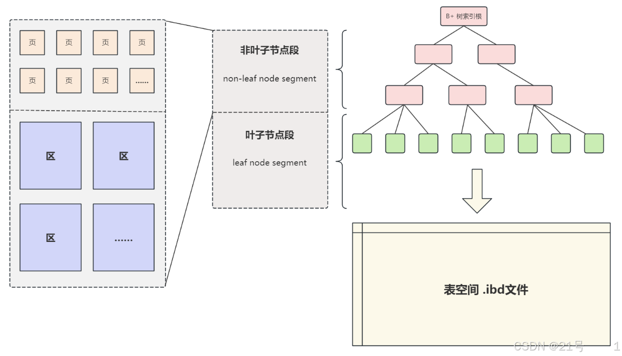 • 可以这么理解,若⼲数据⾏组成了⻚,多个⻚组成了区,多区组成了区组,多个区组组成了段,多个段组成了表空间。