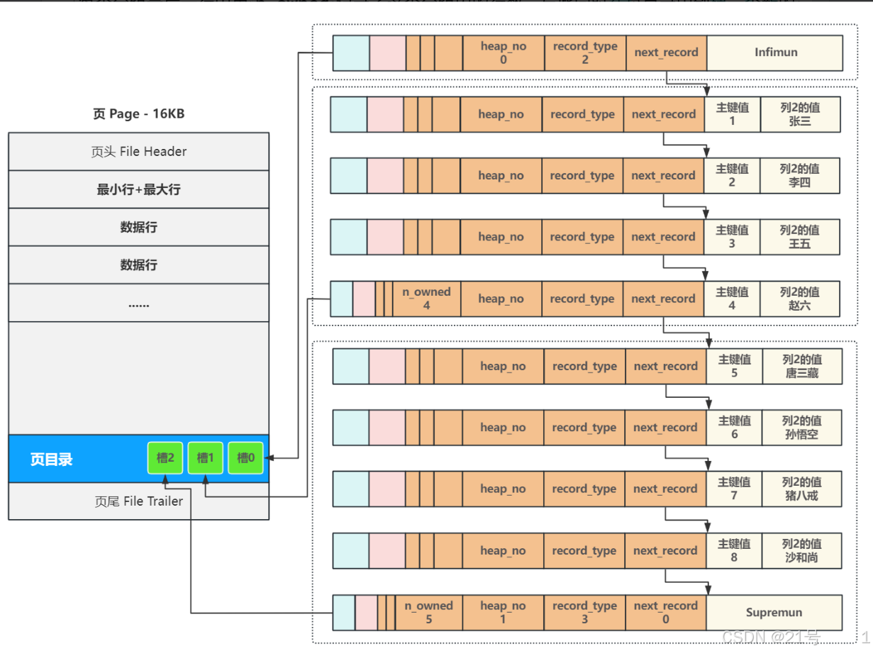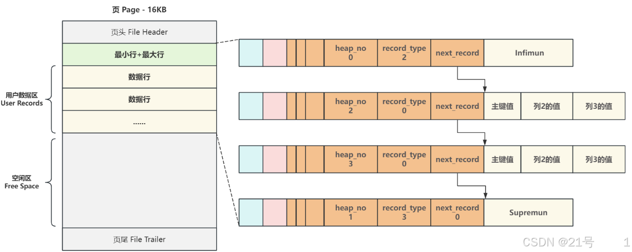record_type=1 ,同时也是B+索引树某层的最⼩值,则会置为1,会在索引查询时⽤到,后⾯