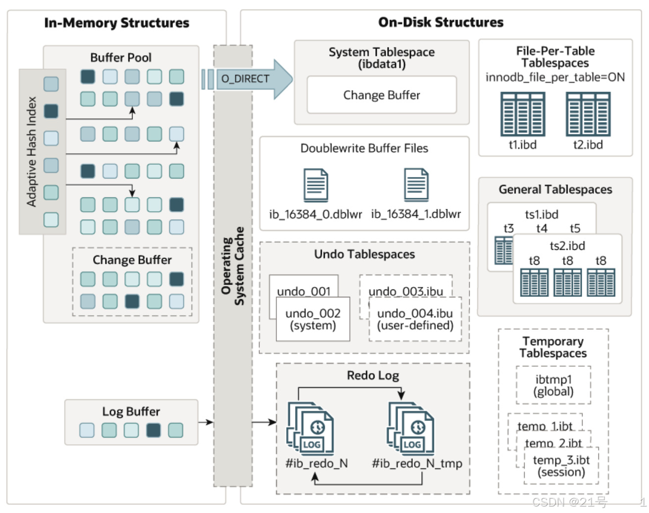 过缓冲池在主内存中缓存数据从⽽提⾼查询性能,也可以每个表使⽤各⾃的独⽴表空间存储数据并