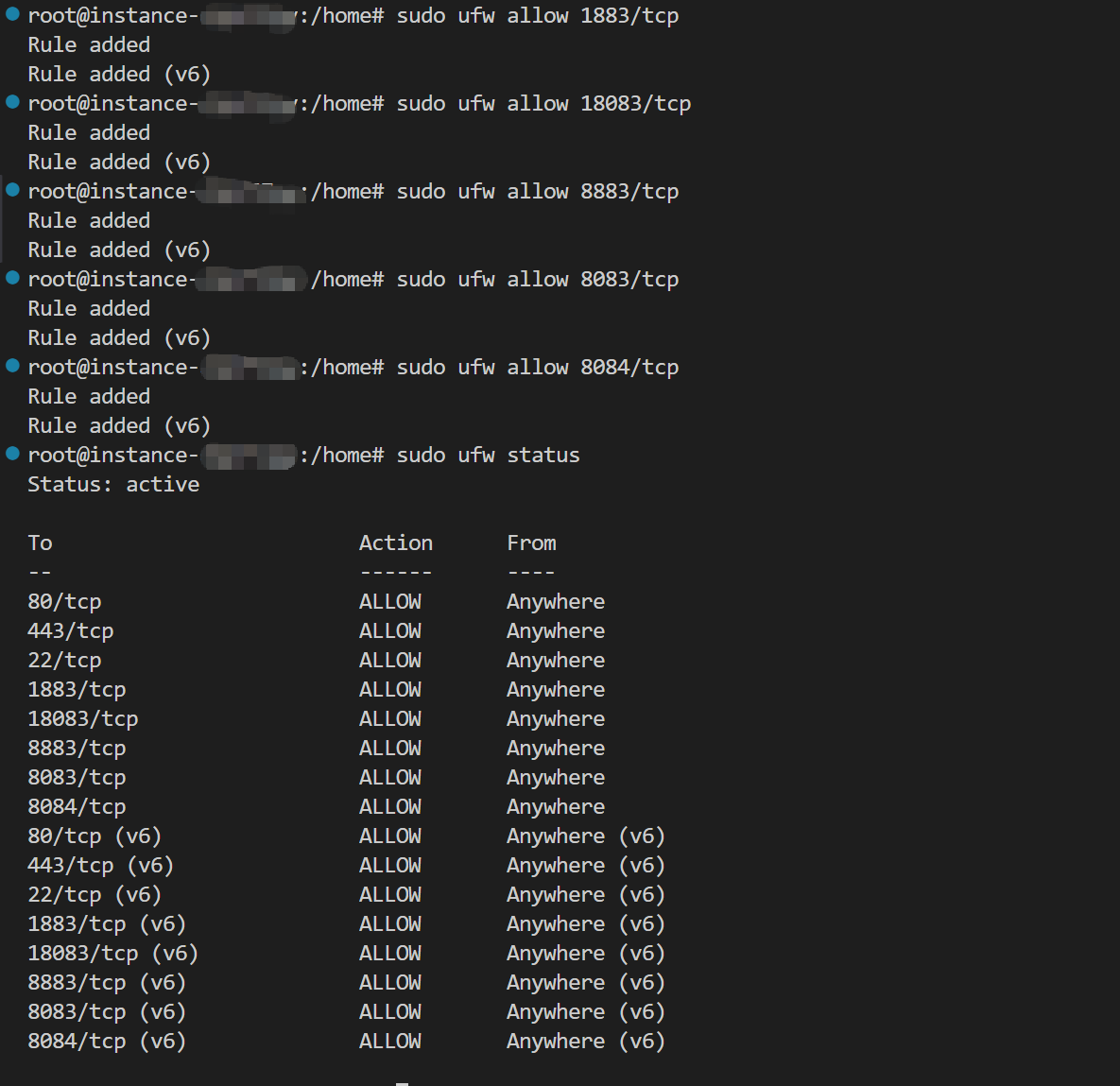 sudo ufw allow 1883/tcp# 开放 Dashboard 管理界面端口