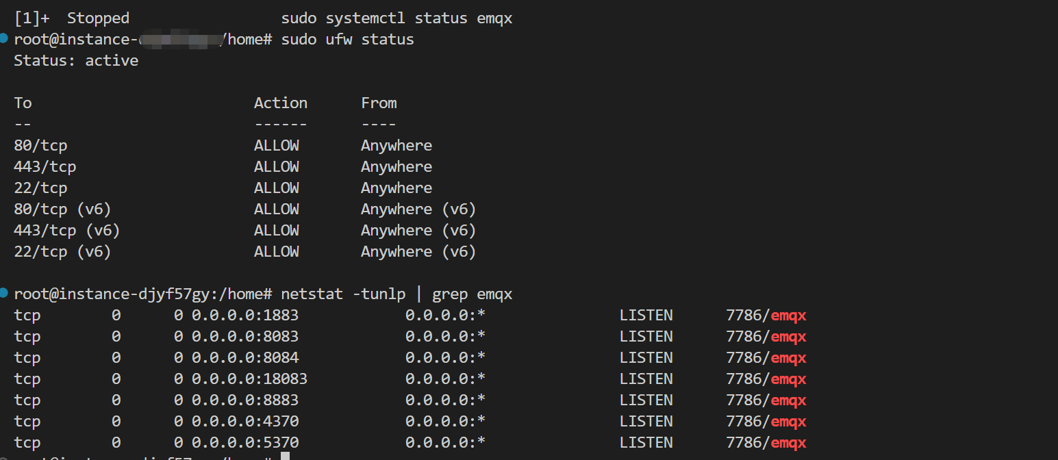 你应该能看到类似以下的输出,表明EMQX正在监听关键端口:
