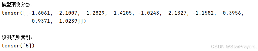 print(output)输出 10 个类别的原始分数, - 例如某类分数为