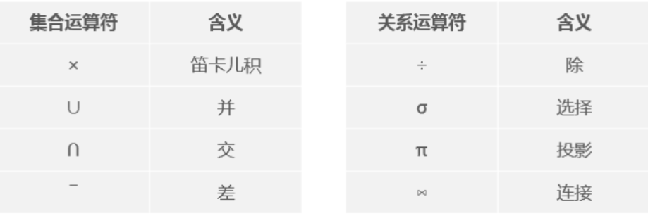 ◼关系代数的运算符有两类:集合运算符和专门的关系 运算符