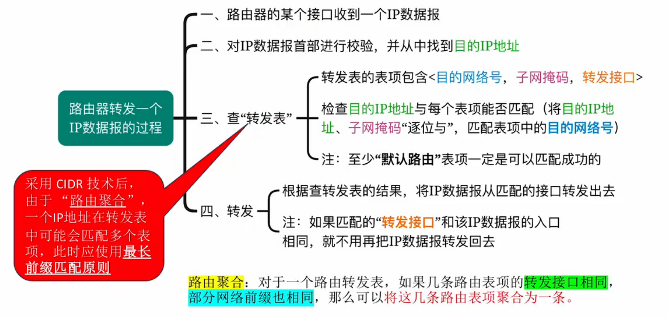对于一个路由转发表,如果几条路由表项的转发接口相同,部分网络前缀也相同,那么可以将这几条路由表项聚合为一条。这种地址的聚合称为路由聚合,也称构成超网。