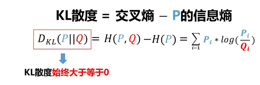 KL散度:交叉熵关注的是实际代价 其编码成本来源于两个方面 第一个是真实分布P自身的内在不确定性(就是信息熵)第二个是源于模型Q与真实P之间的差异 这部分才是模型预测 偏离真实分布而产生的 额外的编码代价 KL散度就是交叉熵 排除掉真实分布P自身的信息熵 得到的仅表征预测模型分布Q和真实分布P之间差异的结果