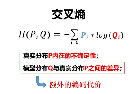 交叉熵:在真实分布为P的情况下 用预测编码Q编码数据时 所需要的平均学习量