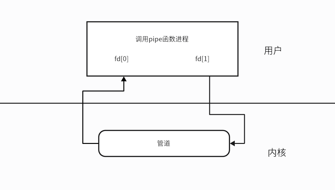 {int fd[2] = {0};if(pipe(fd)<0) //创建管道{perror("pipe err");exit(1);}char buf[100];int len;while(fgets(buf,100,stdin)){len = strlen(buf);if( write(fd[1], buf, len) != len ) //写数据到管道{perror("write err");break;}memset(buf, 0x00, sizeof(buf));if ( (len=read(fds[0], buf, 100)) == -1 ) { //从管道中读取数据perror("read from pipe");break;}if ( write(1, buf, len) != len ) { //将读取的数据写到屏幕上perror("write to stdout");break;}}return 0;