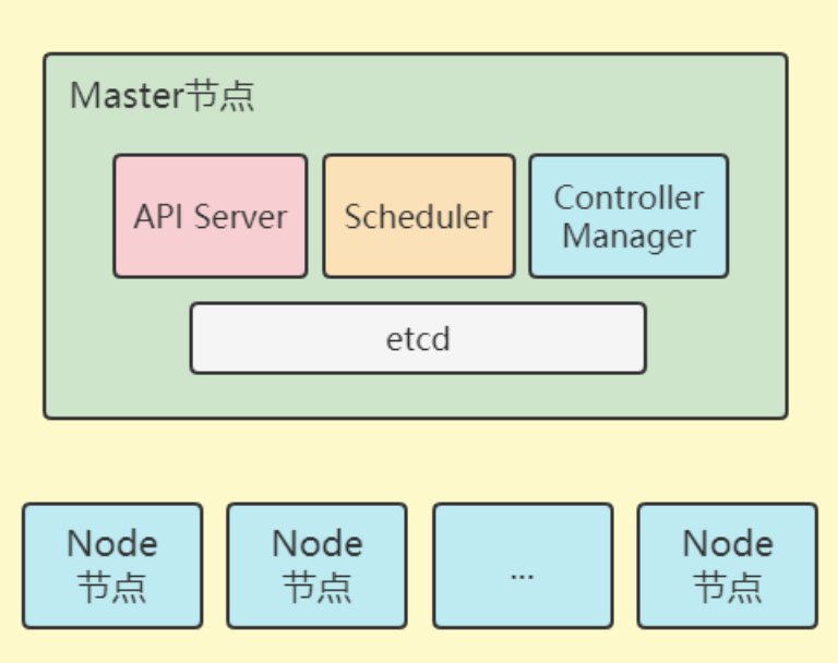Master 节点包括 API Server、Scheduler、Controller manager、etcd。
