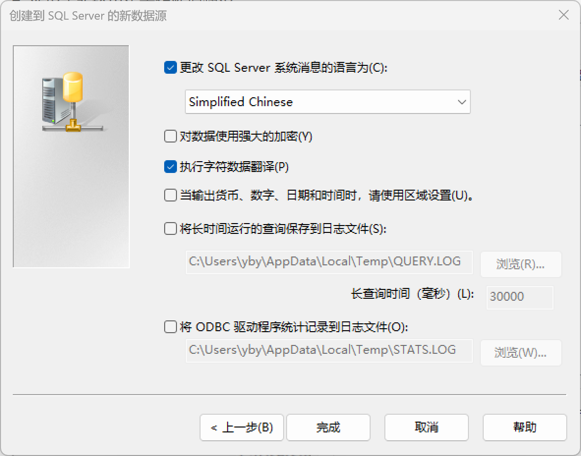 ODBC Driver 17/18 for SQL Server(兼容性更好,支持 SQL Server 2012 及以上版本),选中后点击 “完成”。