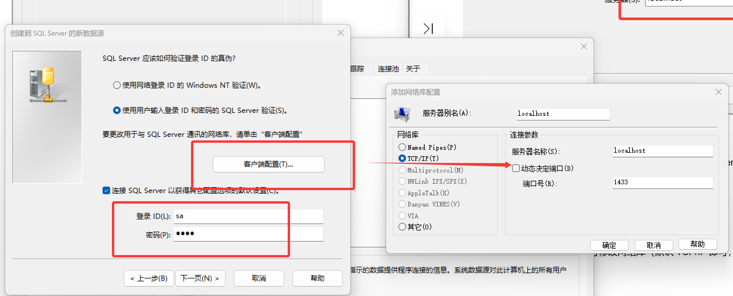 - 网络库选择 “TCP/IP (T)”(远程连接必须用 TCP/IP);