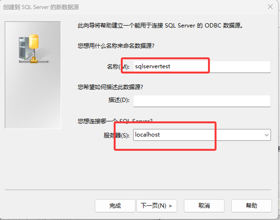 - 弹出 “创建到 SQL Server 的新数据源” 向导,关键填写 2 项: