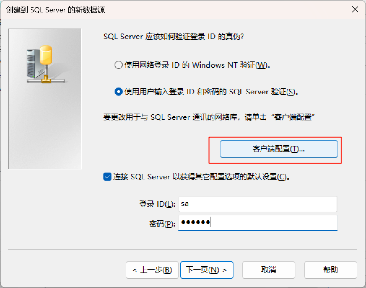 - 登录 ID (L):输入 SQL Server 的账号(如
