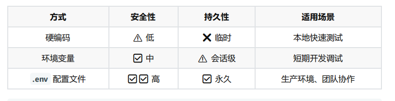 - 硬编码:写在代码文件中使用环境变量