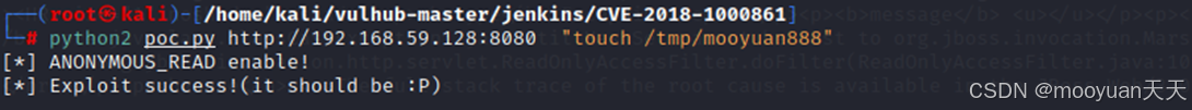 python2 poc.py http://192.168.59.128:8080 "touch /tmp/mooyuan888"