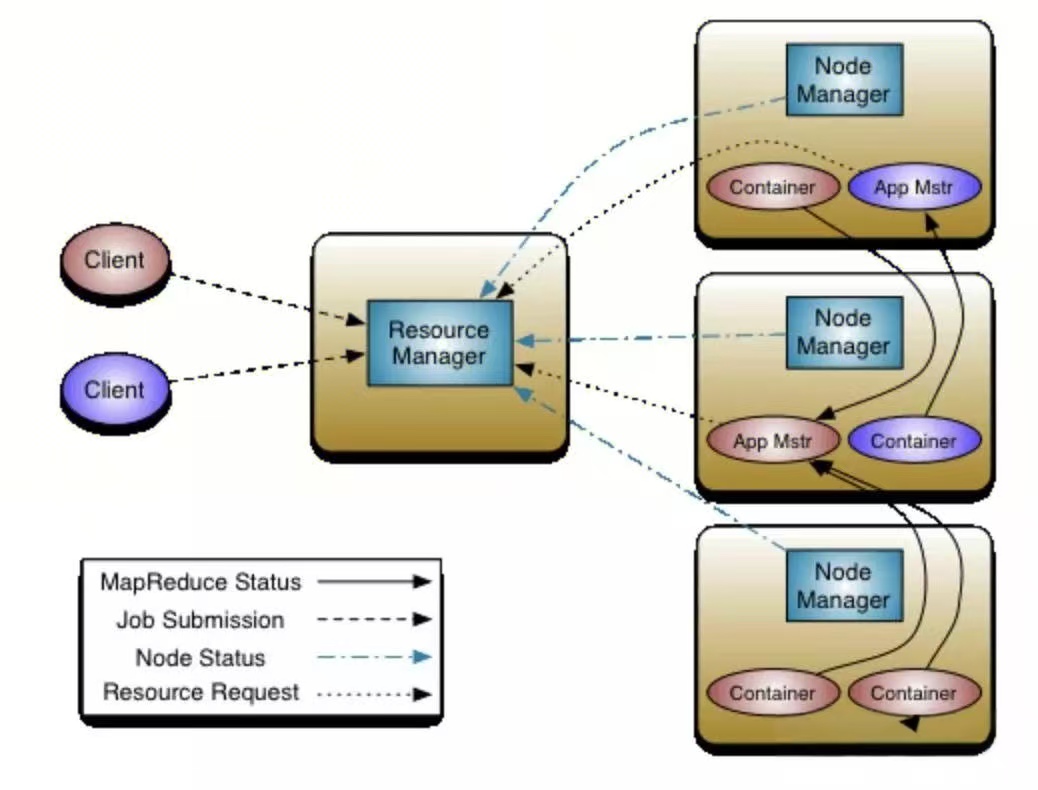 所有应用程序的任务(包括ApplicationMaster)都必须在Container中运行;可以想象成一个虚拟机,为任务提供了独立的、受保障的运行环境。
