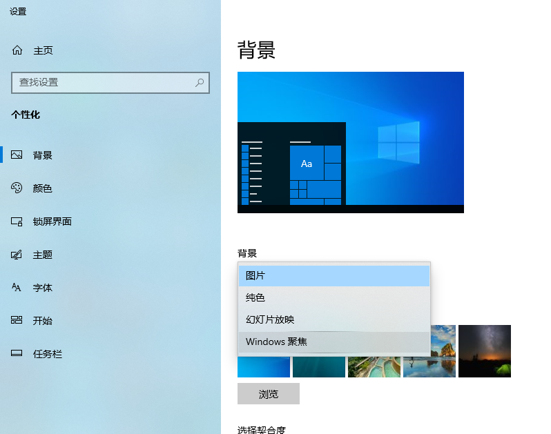 问题描述: 操作系统:win10专业版 桌面图标点击会打开浏览器Windows bing搜索页面。右键也没删除按钮。 解决方法: 桌面空白处右键。选择【个性化】,选择【背景】,由windows聚焦改为图片即可。