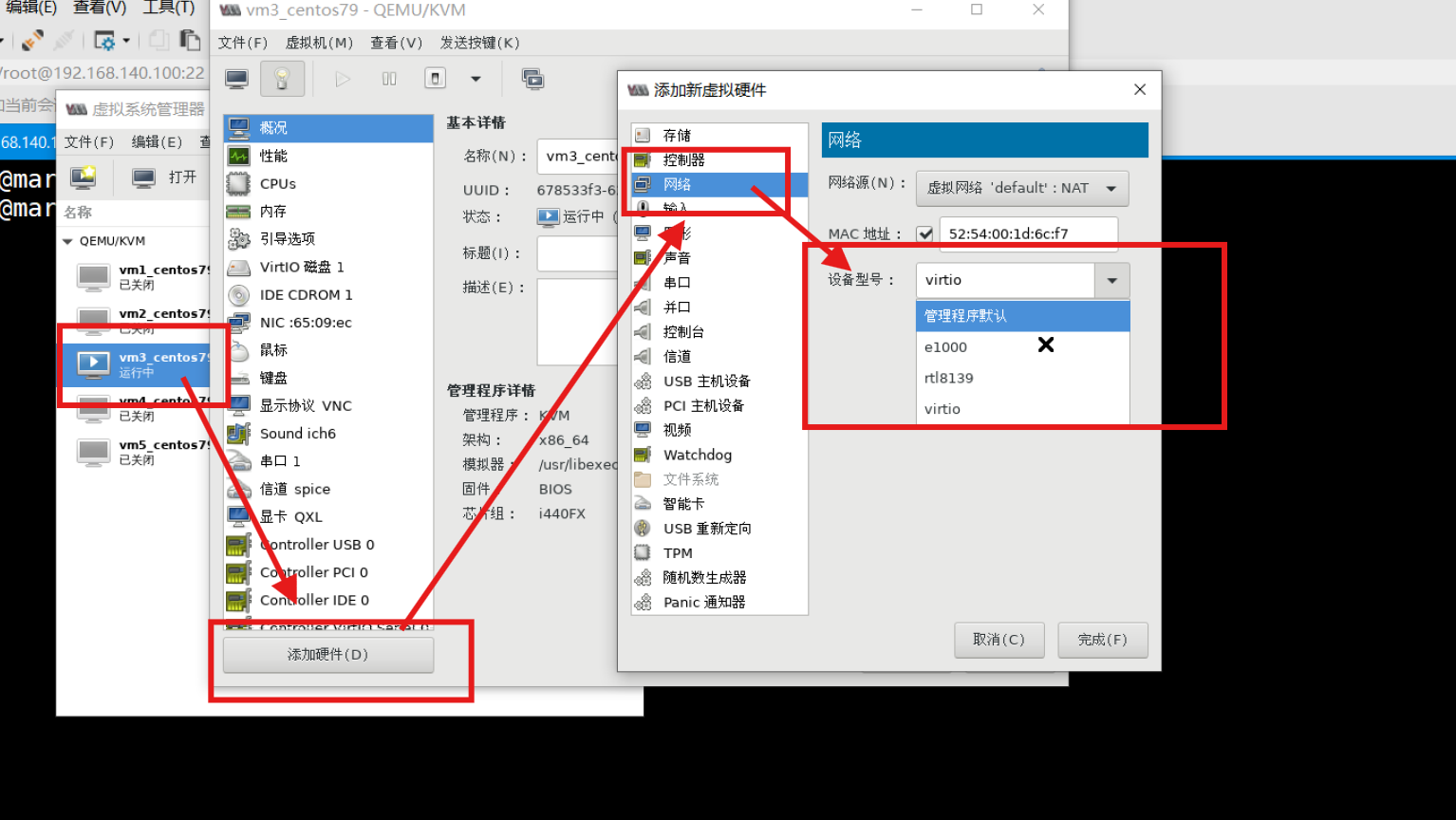 virsh attach-interface vm01_centos79 --type network --model virtio --source default# 永久添加网卡(写入虚拟机配置文件)