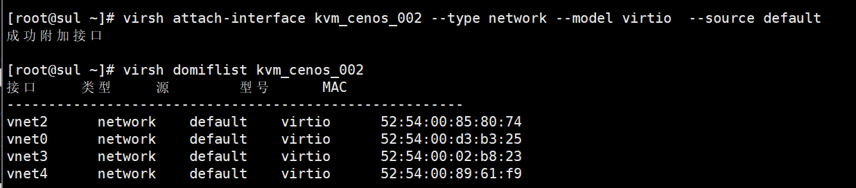 # 成功分离接口[root@sul ~]# virsh domiflist kvm_cenos_002