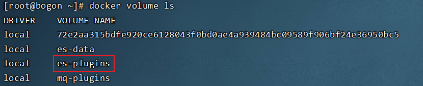 1.在虚拟机当中输入:docker volume ls查看数据卷,找到elasticsearch的插件: