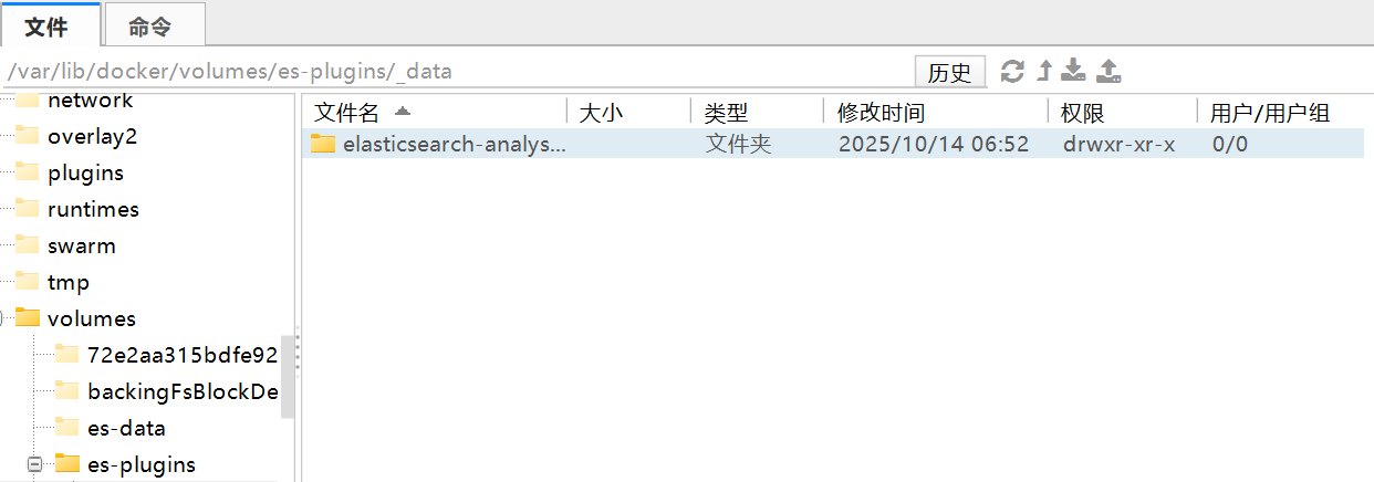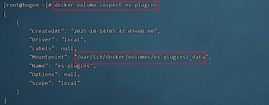 2.根据插件名称查看内部路径信息:docker volume inspect es-plugins