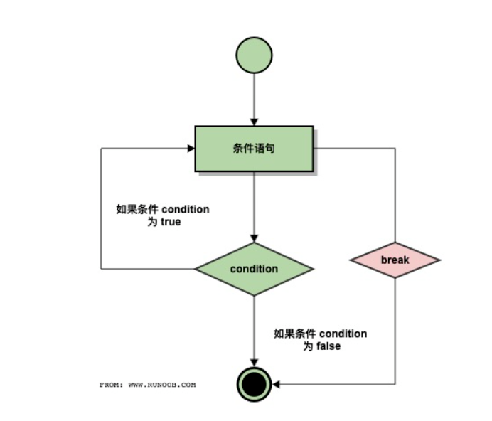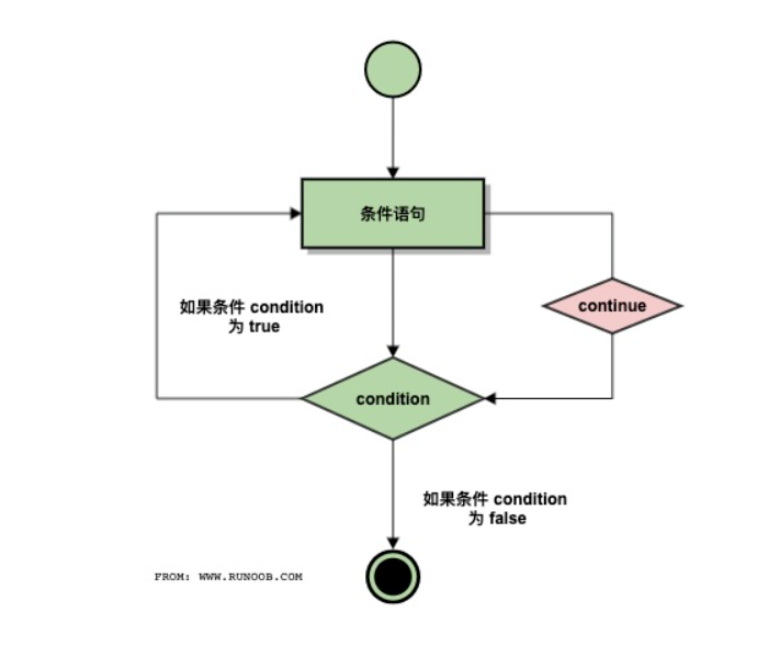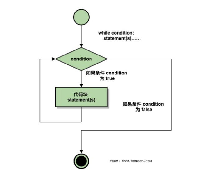 while 判断条件(condition):执行语句(statements)……执行流程图如下: