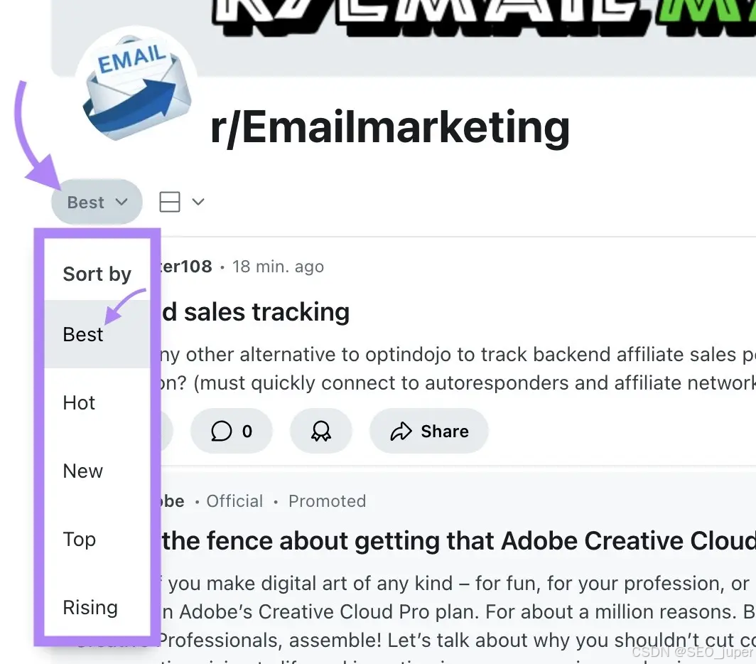 首先按“最佳”对 Reddit 子版块中的对话进行排序。这通常会向您显示参与度很高的讨论,这很好地表明了受欢迎程度。