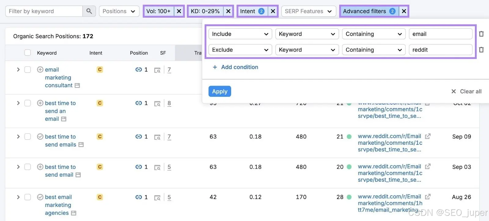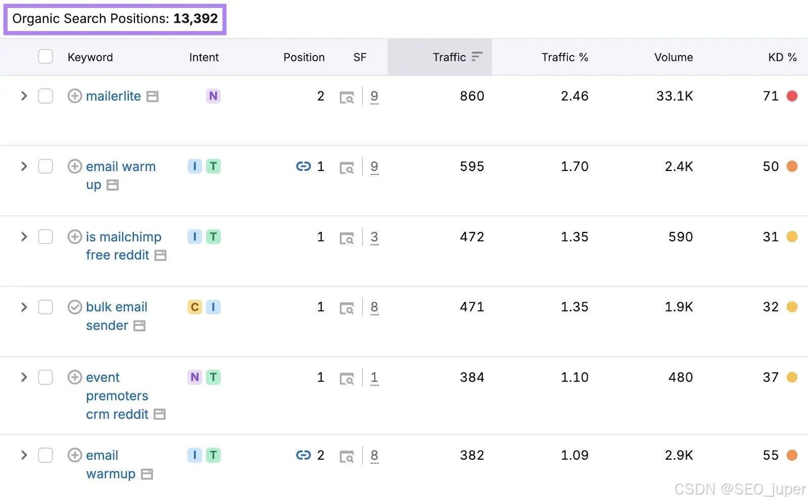 下一步是找出您找到的 Reddit 子版块已经排名的关键字。这会向您显示具有实际搜索量的关键字。