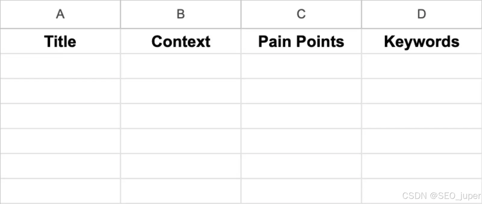 第一步是简单地收集数据。首先创建一个包含以下列的简单电子表格: