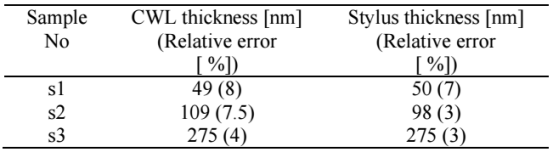 CWL 法误差特性:对不同厚度样品的 CWL 测量显示,标准相对误差均小于 8%;样品间误差的差异,主要与样品自身特性有关(如表面灰尘、膜层不均匀)。但 CWL 法不适用于测量厚度小于 50nm 的薄膜,因为此时测量值已接近设备模数转换器(ADC)的分辨率,数据准确性无法保证。