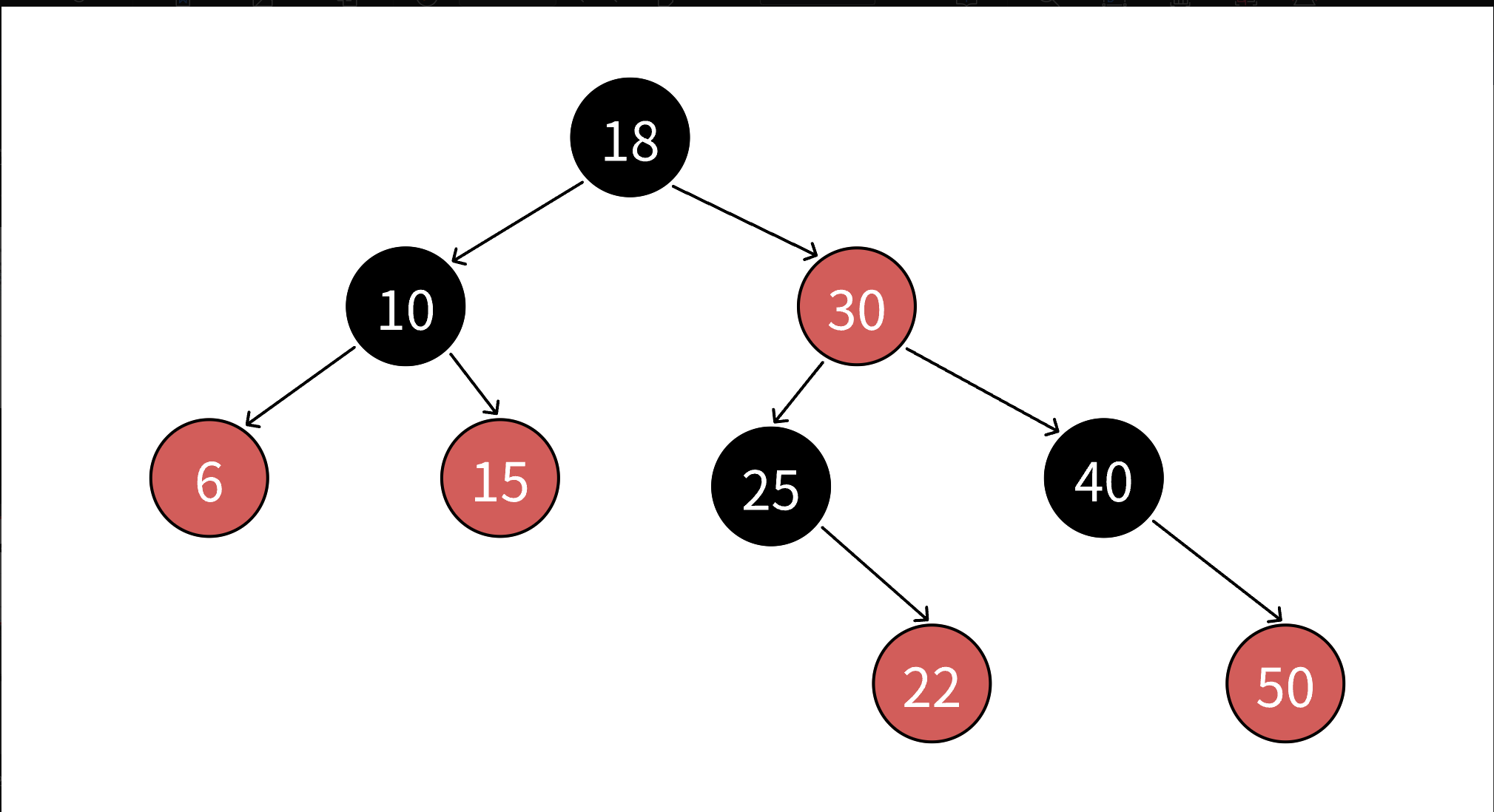 3. 如果⼀个结点是红⾊的,则它的两个孩⼦结点必须是⿊⾊的,也就是说任意⼀条路径不会有连续的红⾊结点。