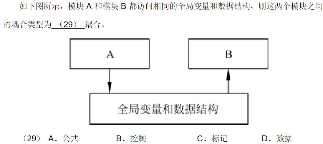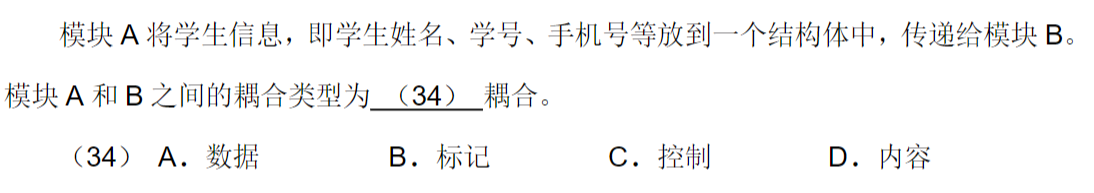 模块A之间访问模块B的内部结构,则模块A和模块B的耦合类型为()