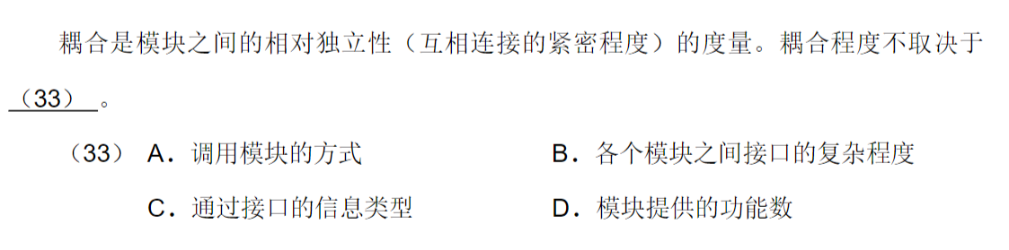 解析:因为模块间的联系加强,说明模块之间的耦合程度高了,对于软件维护是不利的