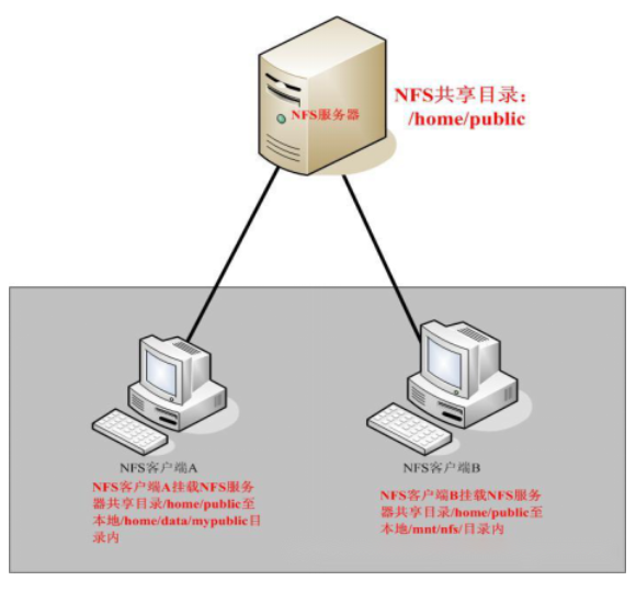 NFS分为服务端和客户端。服务端提供共享目录或文件,客户端对服务端共享的目录或文件挂载后,就可以读取到服务端提供的文件或目录,在客户端看来就像访问本地一样。