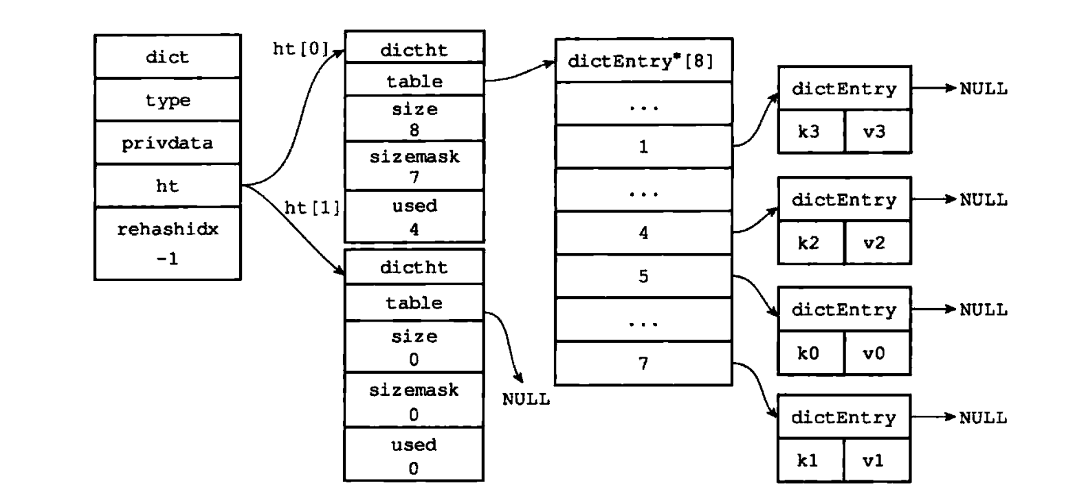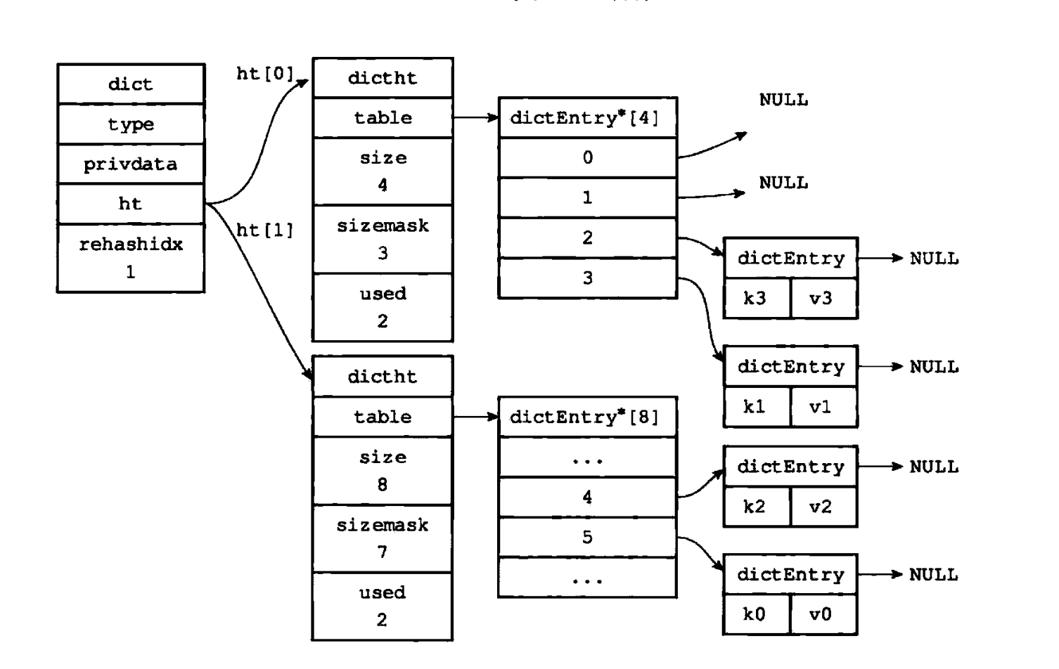 ht[1]的地址赋值给ht[0],使新表成为主哈希表; - 重置