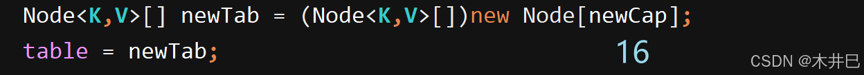 调用put方法后,会给数组分配默认内存大小,为16。