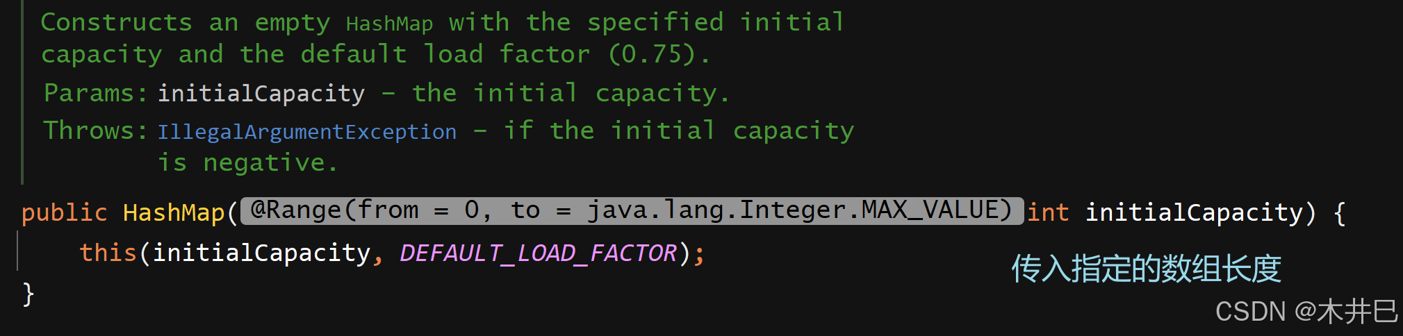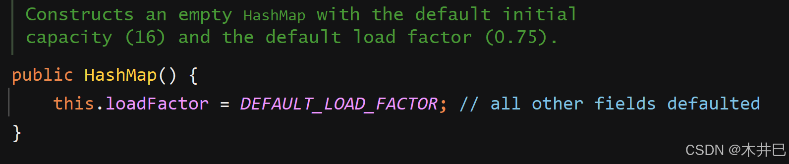 可见该方法内部调用的是带有两个参数的构造方法(一个是传入的指定长度值,一个是默认的载荷因子)