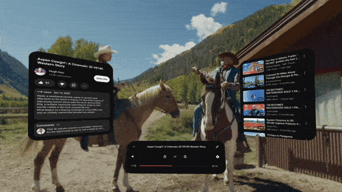 作为对标苹果 Vision Pro 的设备, Galaxy XR 搭载的是 Android XR 系统 , Android XR 基于开放标准构建,并支持 OpenXR、WebXR 和 Unity 等工具,例如可以通过 360 度支持的 VR 内容,体验沉浸式的视频和应用交互: