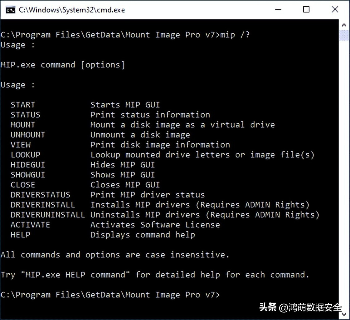Mount image Pro 具有完整的命令行功能,经常用作第三方应用程序访问取证获取的数据的引擎。