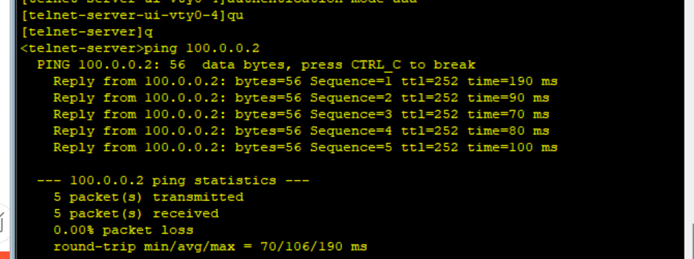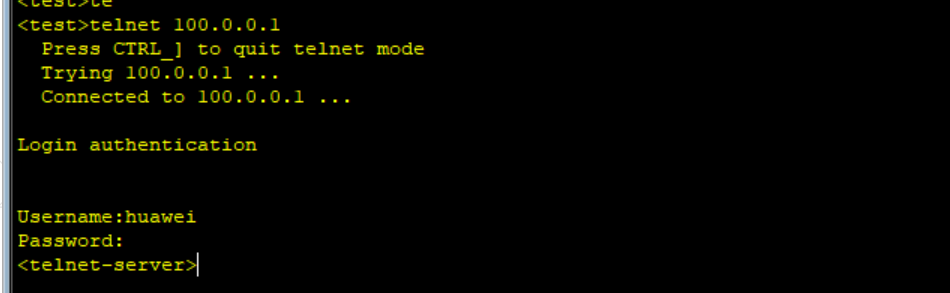 6.test设备需要远程登陆到内网telnet-server设备,登录账号为 huawei 密码 123456,登录权限为最高。