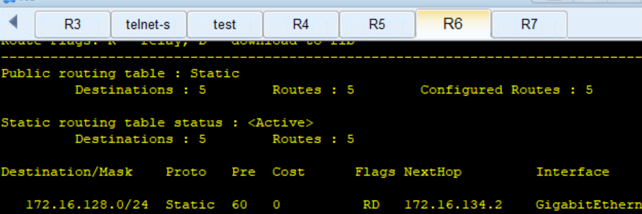 [R7]ip route-static 172.16.130.0 24 172.16.134.1