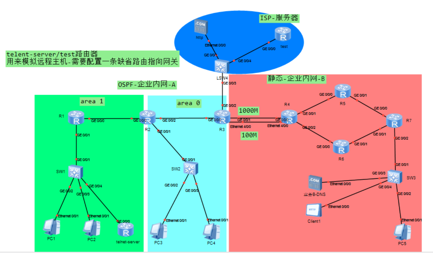 9.所有设备严格按照拓扑图标识进行配置,注意大小写。
