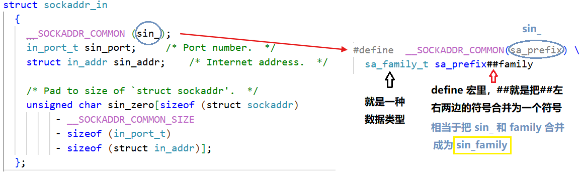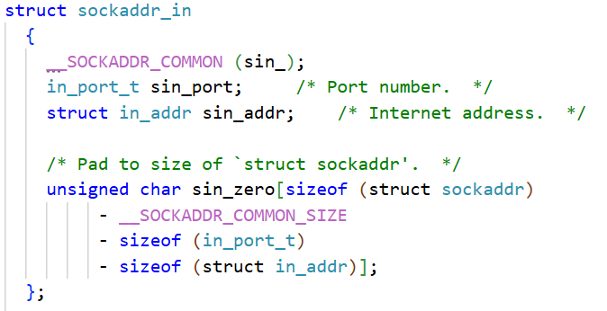 struct in_addr{in_addr_t s_addr;}; 所以其实这个sockaddr_in里就是有三个整数而已。