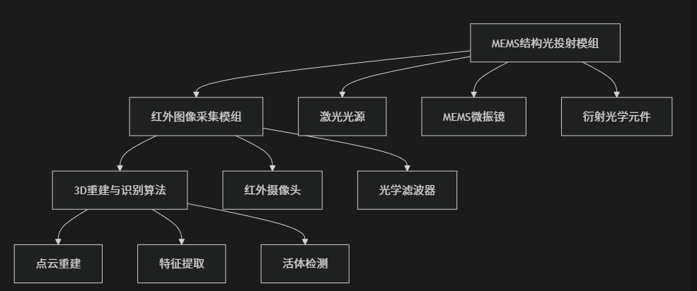 完整的MEMS结构光人脸识别系统包含三个核心子系统: