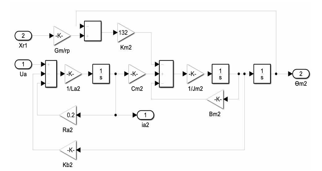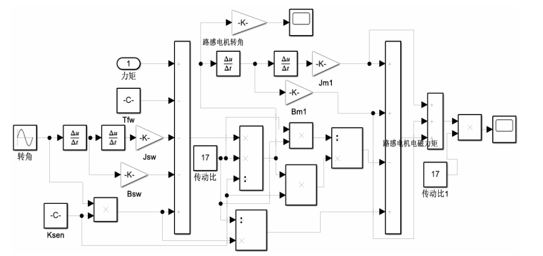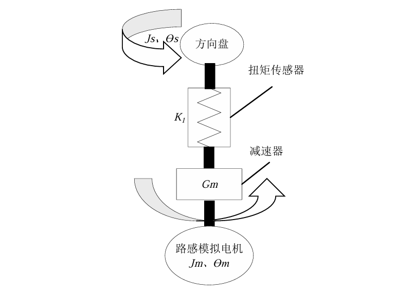 线控转向系统没有了转向柱的存在,车辆在转向过程中地面的情况不能及 时反馈给驾驶员。因此路感电机的作用是根据路面的实际情况,将路感实时的 反应给驾驶员,从而使驾驶员能够感知道路情况并做出最佳的转向选择。根据 对应的动力学模型,建立路感电机以及减速器的动力学模型: