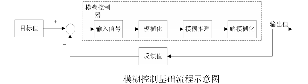 模糊控制以模糊集合论、模糊语言变量和模糊逻辑推理为基础,如图所示, 使用模糊集合论把专家知识和操作人员经验编写成模糊规则表,把输入信号模糊化并 依据规则表完成模糊推理,将推理结果解模糊化作为模糊控制器的输出,具有适用性 强和鲁棒性高的优点