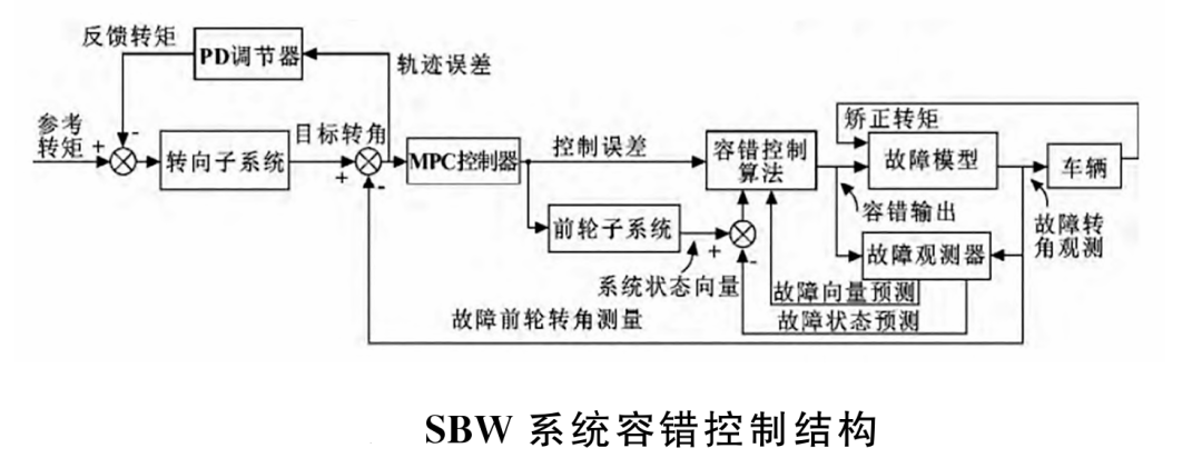 软件容错是依靠控制器的容错算法来提高整个系统的冗余度,从而改 善系统的容错性能,对故障后剩余正常工作的转向系统装置 进行控制,当部分装置故障时,通过实时数据采样,定位故障 类型与位置,进而整合剩余正常工作的装置,互相协同工作, 达到正常工作状态。