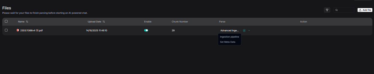 如果希望调整单个文件的 Ingestion pipeline,也可以通过点击 Parse 位置调整。