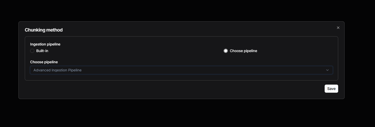 构建完成一个 Ingestion pipeline 之后,接下来要将其关联到对应的知识库。可在创建知识库页面的 “Ingestion pipeline”标签,找到并点击 “Choose pipeline” 选项。随后,从下拉菜单中选择已创建好的 Pipeline 进行关联。一经设定,该 Pipeline 将成为此知识库的默认文件解析流程。
