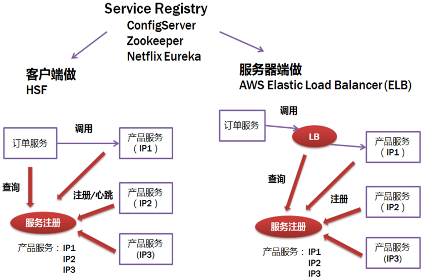 **客户端做:**优点是架构简单,扩展灵活,只对服务注册器依赖。缺点是客户端要维护所有调用服务的地址,有技术难度,一般大公司都有成熟的内部框架支持,比如Dubbo。