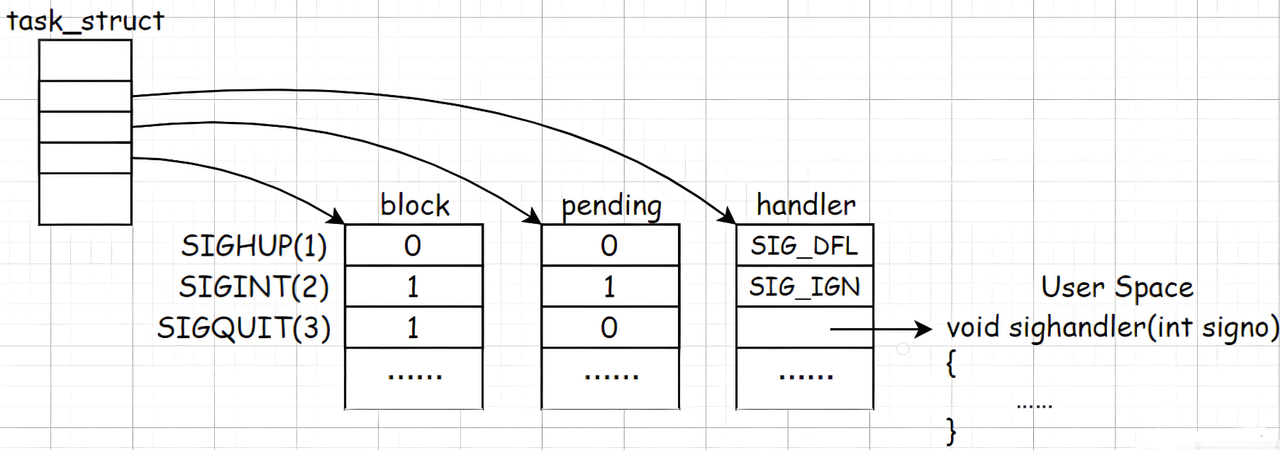 信号在内核中的表示示意图